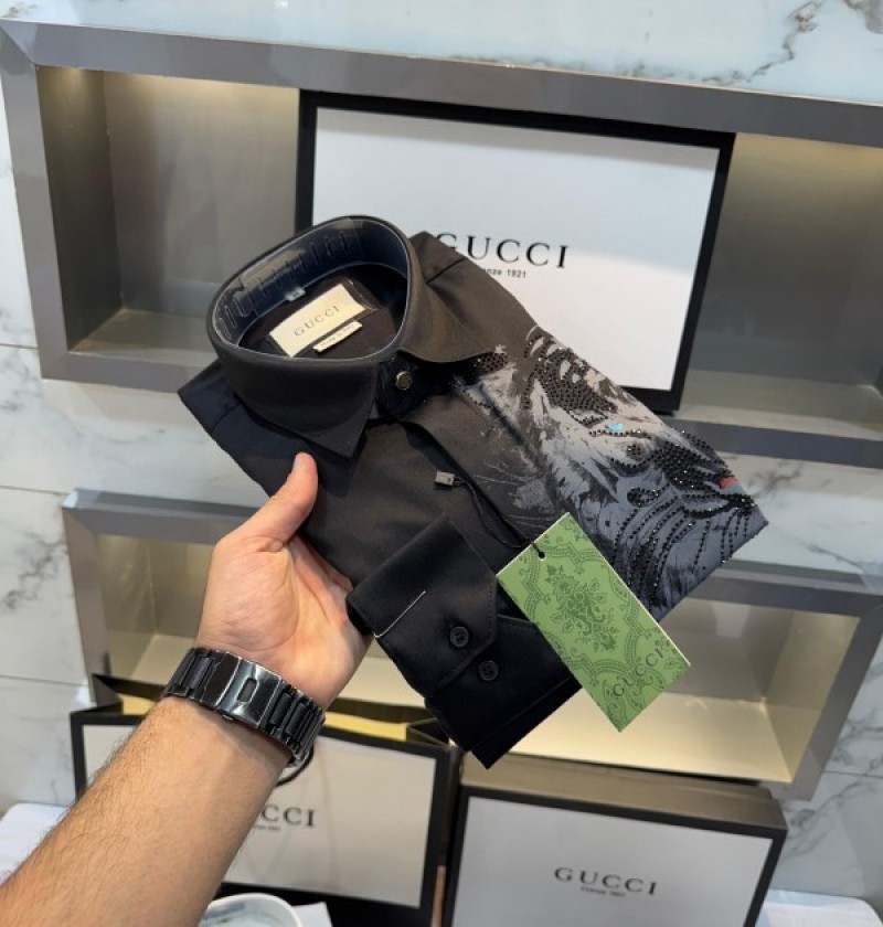 Gucc i Black Designer Shirt With Box Packing And Carry Bag